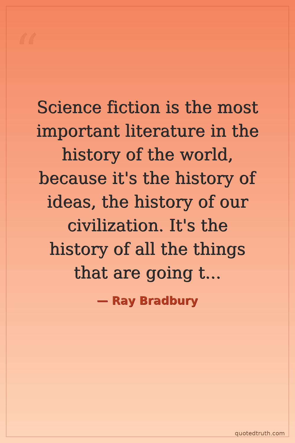 Science fiction is the most important literature in the history of the world, because it's the history of ideas, the history of our civilization. It's the history of all the things that are going to happen to us.