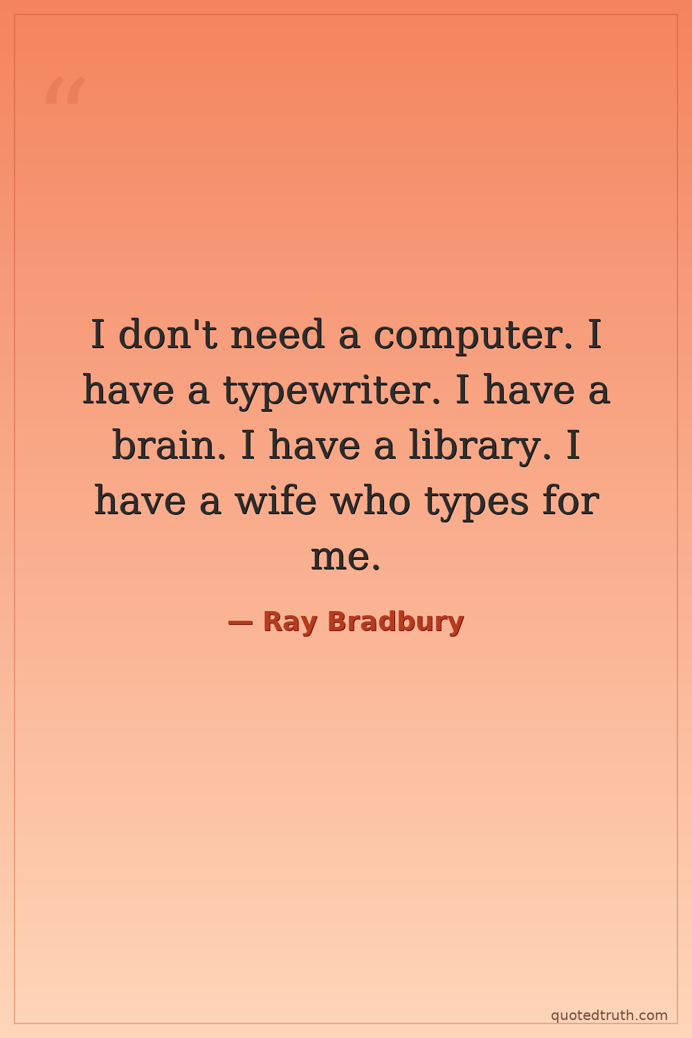 I don't need a computer. I have a typewriter. I have a brain. I have a library. I have a wife who types for me.
