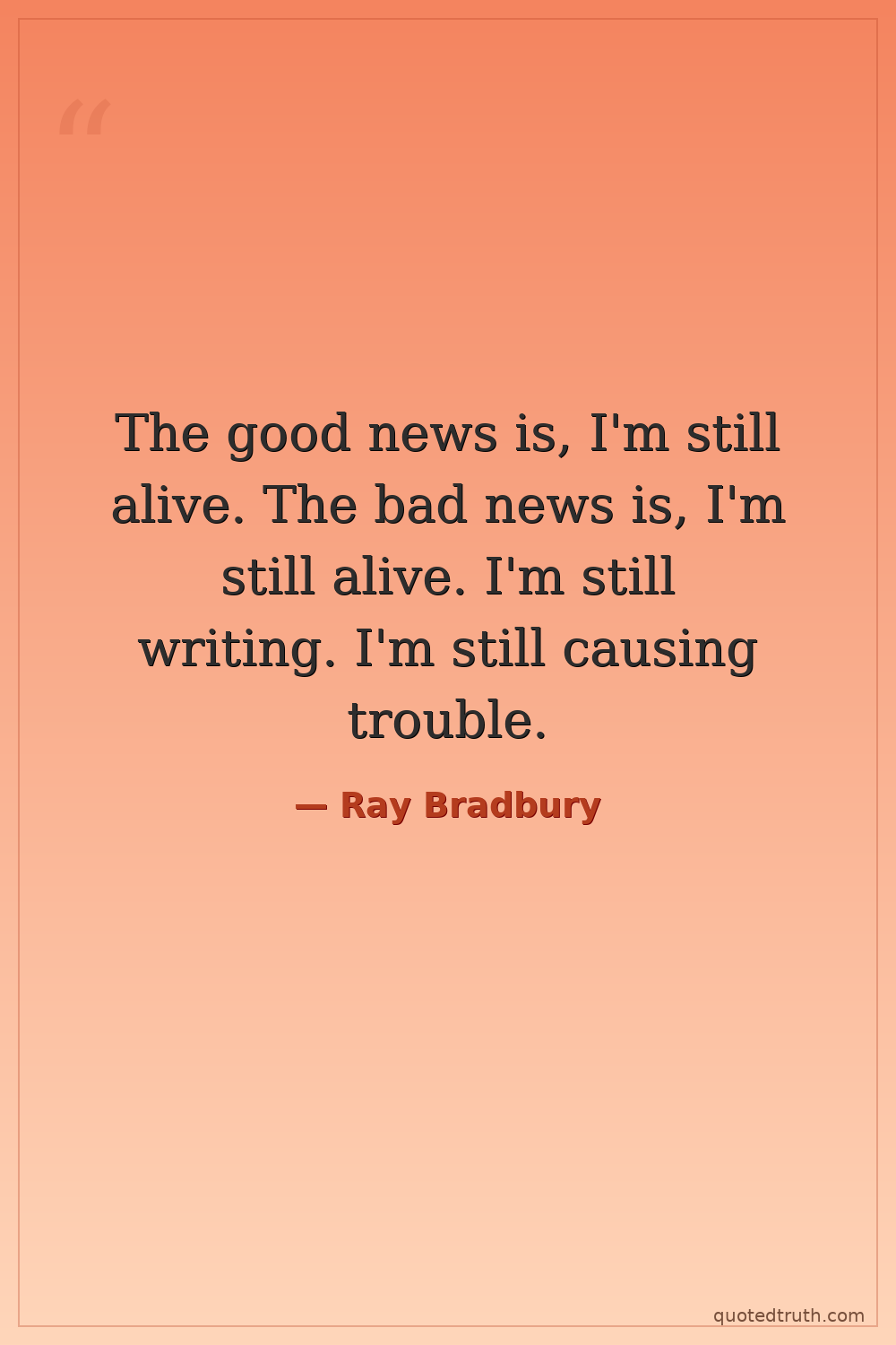 The good news is, I'm still alive. The bad news is, I'm still alive. I'm still writing. I'm still causing trouble.