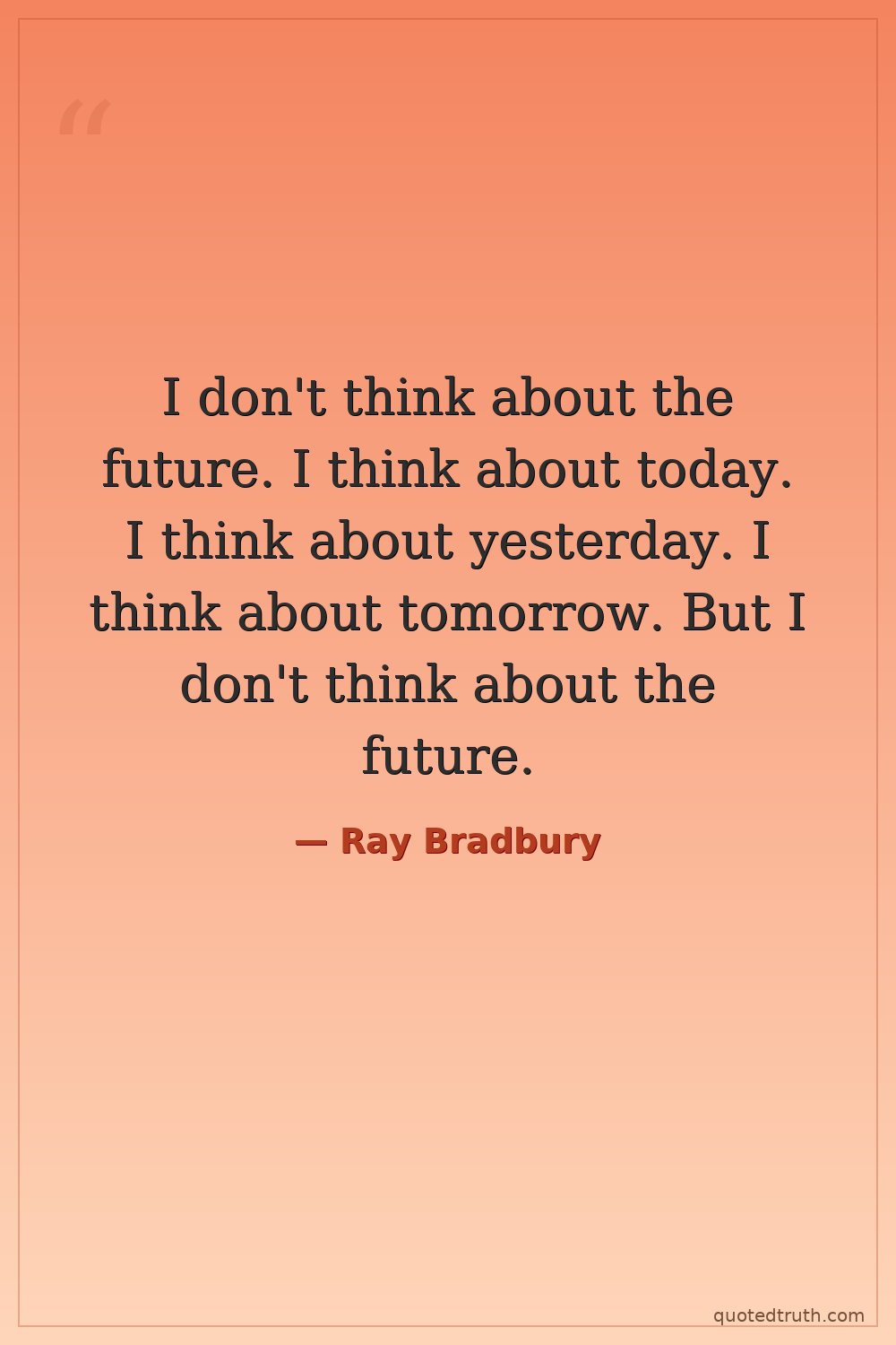 I don't think about the future. I think about today. I think about yesterday. I think about tomorrow. But I don't think about the future.