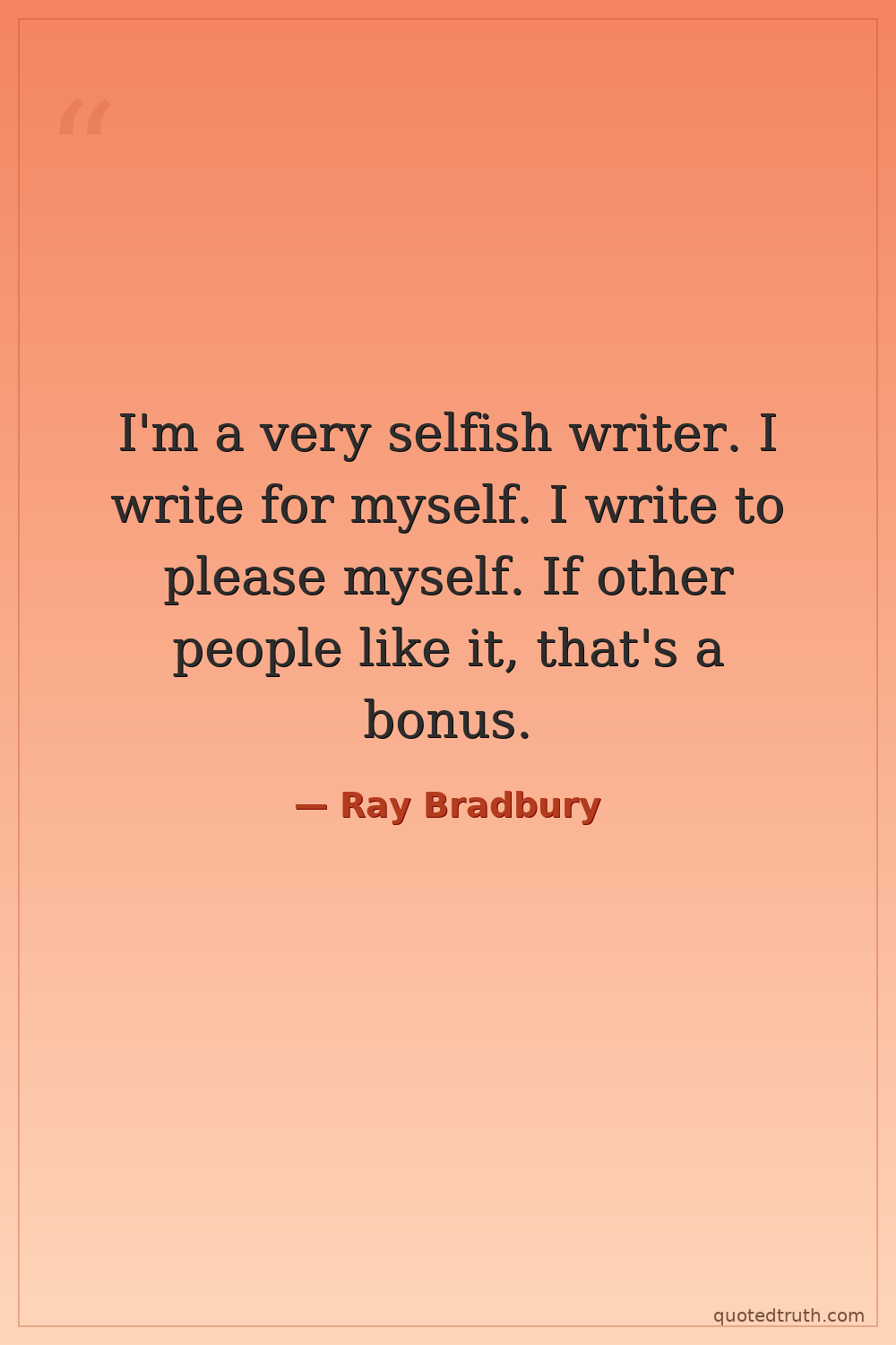 I'm a very selfish writer. I write for myself. I write to please myself. If other people like it, that's a bonus.