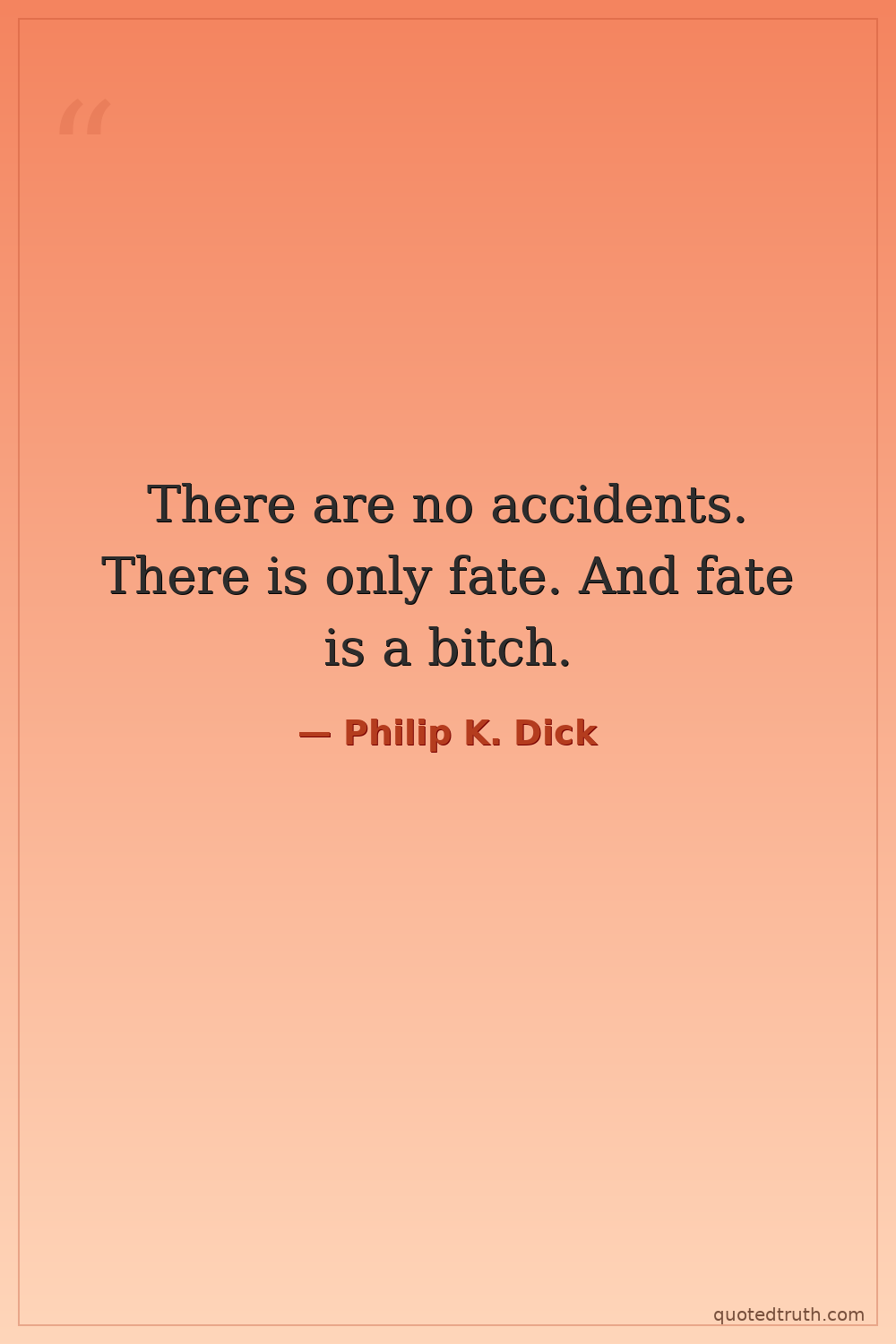There are no accidents. There is only fate. And fate is a bitch.