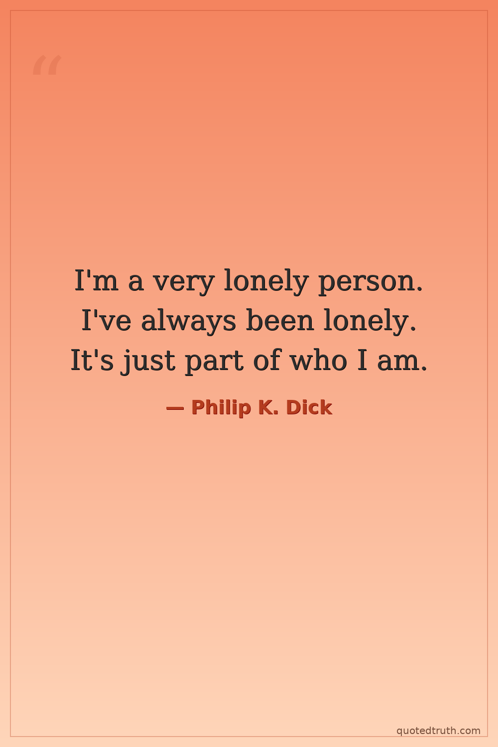 I'm a very lonely person. I've always been lonely. It's just part of who I am.