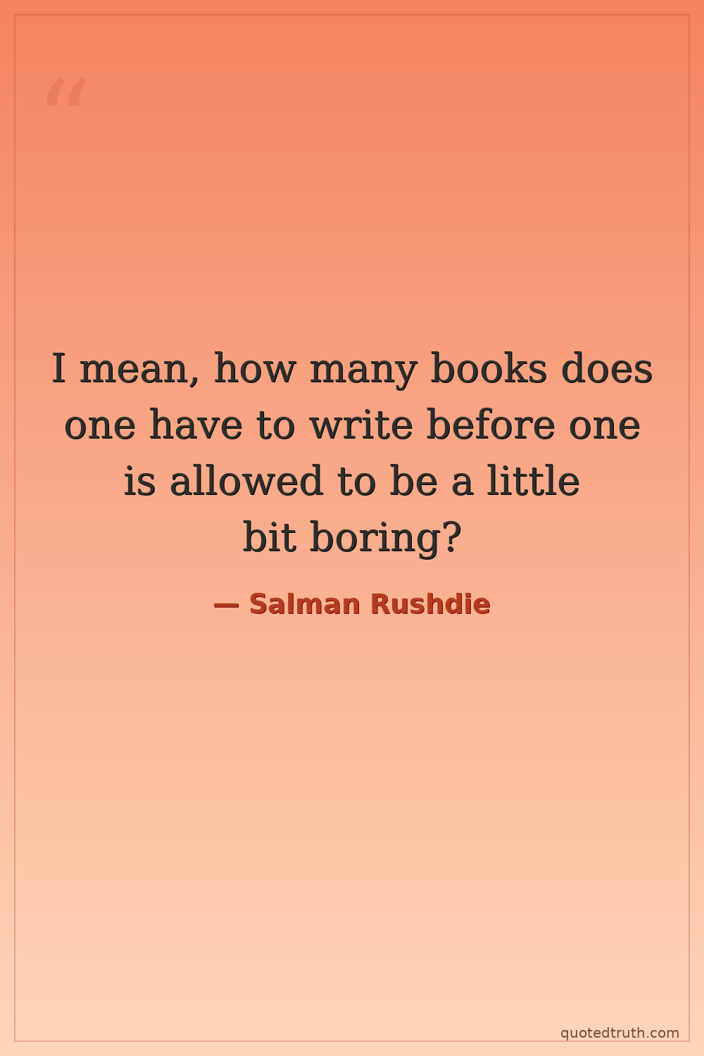 I mean, how many books does one have to write before one is allowed to be a little bit boring?