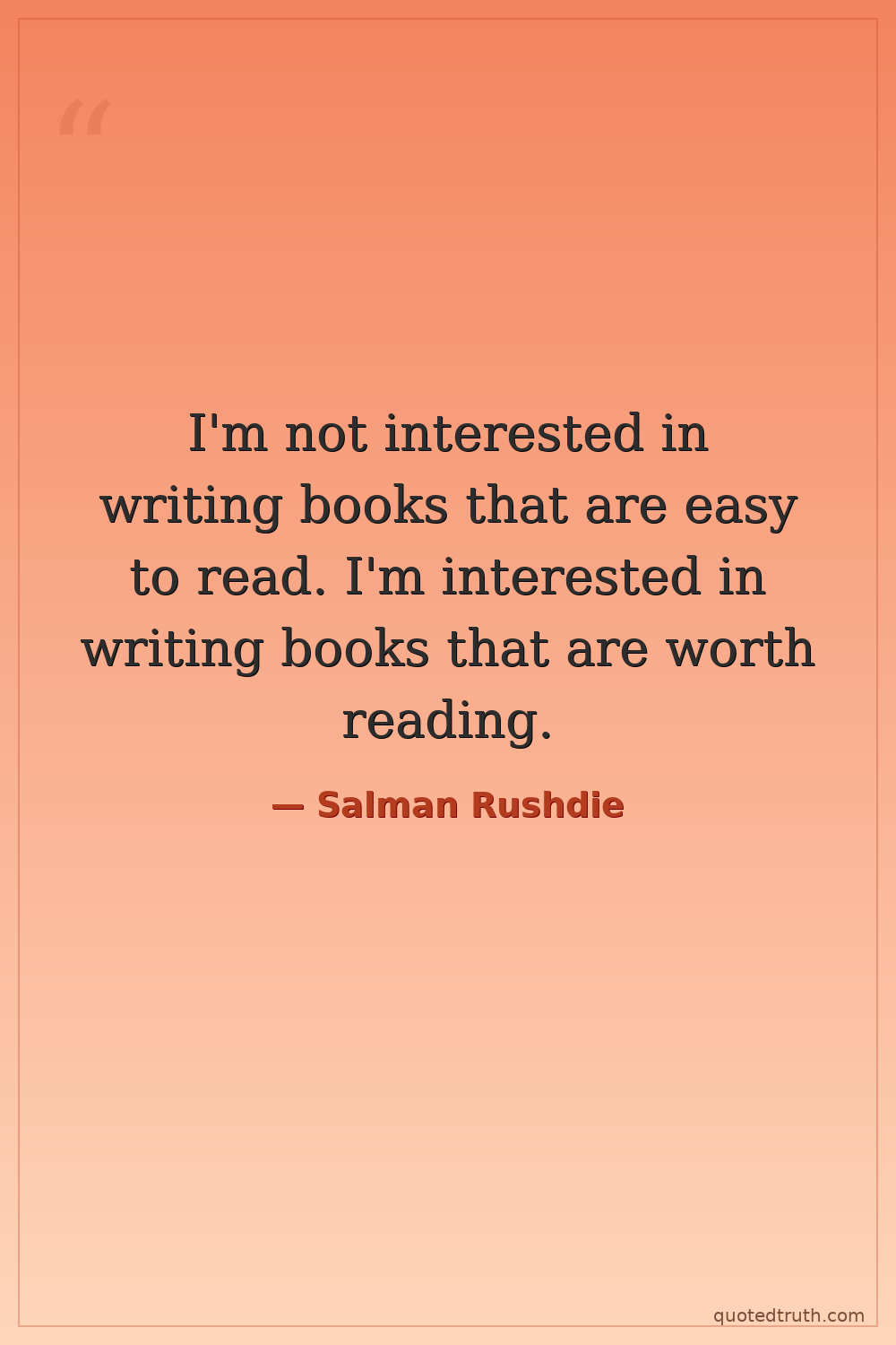 I'm not interested in writing books that are easy to read. I'm interested in writing books that are worth reading.
