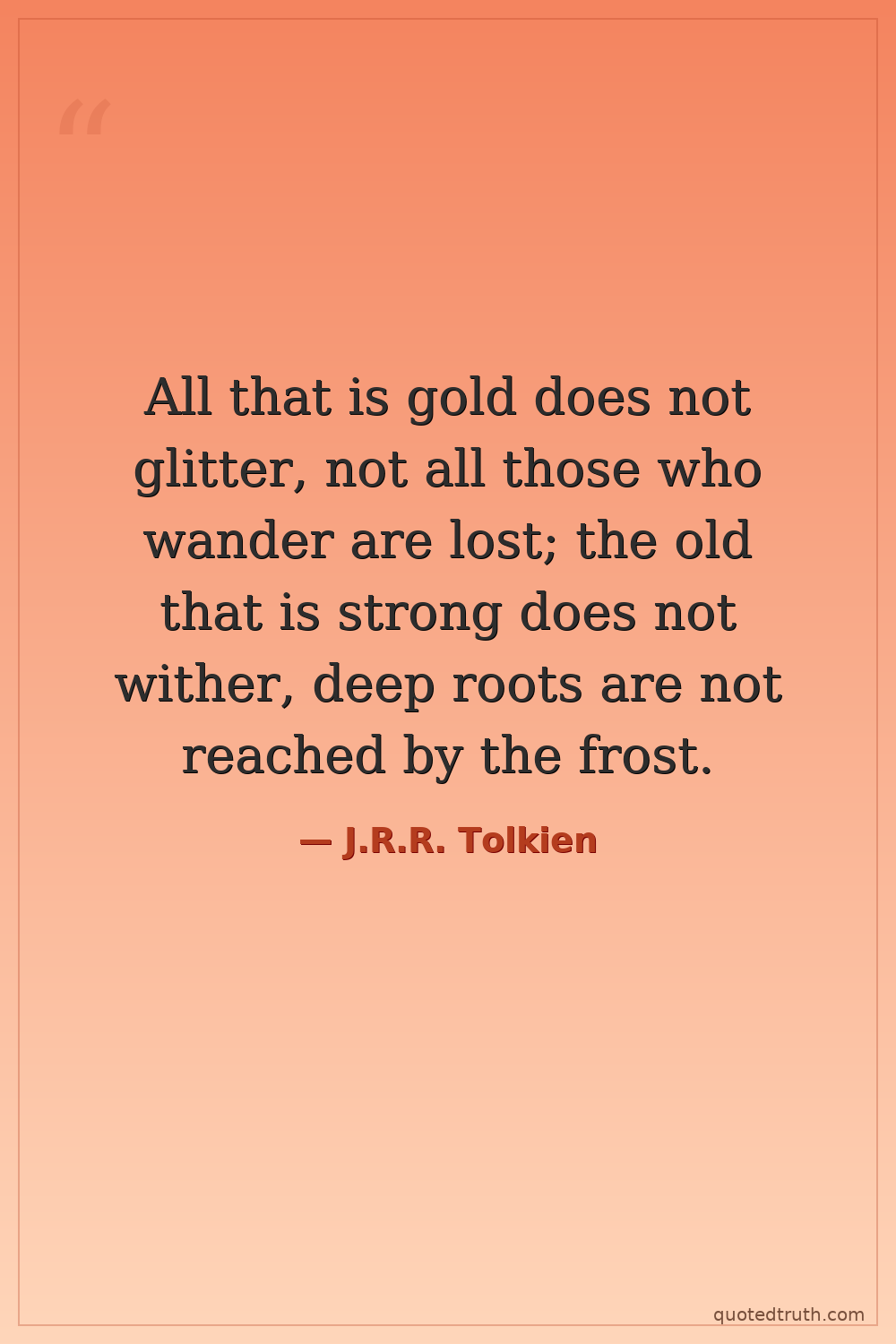 All that is gold does not glitter, not all those who wander are lost; the old that is strong does not wither, deep roots are not reached by the frost.