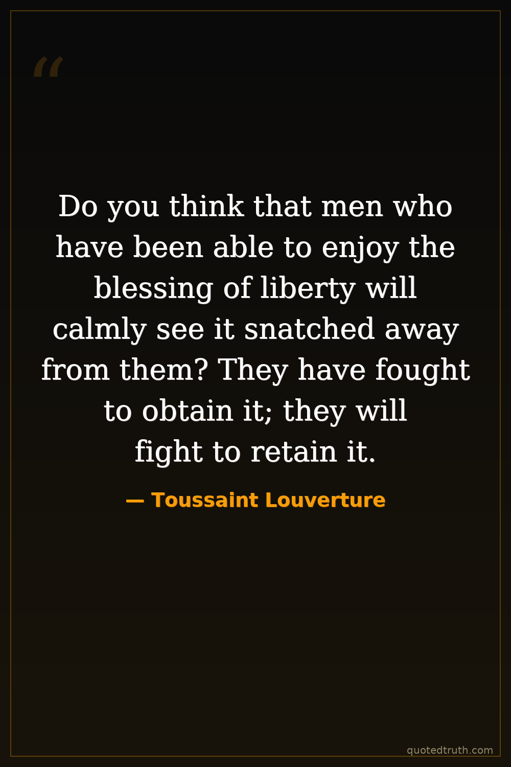 Do you think that men who have been able to enjoy the blessing of liberty will calmly see it snatched away from them? They have fought to obtain it; they will fight to retain it.
