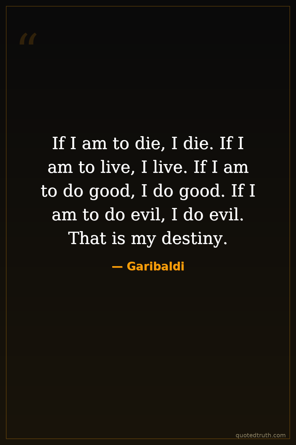 If I am to die, I die. If I am to live, I live. If I am to do good, I do good. If I am to do evil, I do evil. That is my destiny.