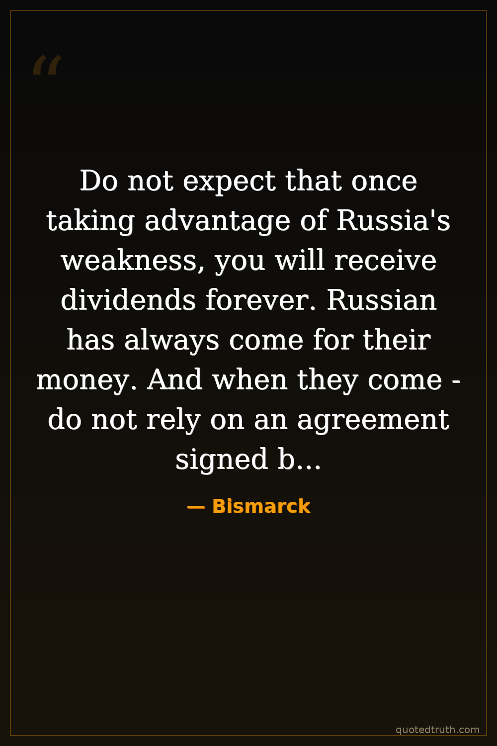 Do not expect that once taking advantage of Russia's weakness, you will receive dividends forever. Russian has always come for their money. And when they come - do not rely on an agreement signed by you, you are supposed to justify. They are not worth the paper it is written. Therefore, with the Russian is to play fair, or do not play. Never fight with Russian. On your every stratagem they answer unpredictable stupidity.