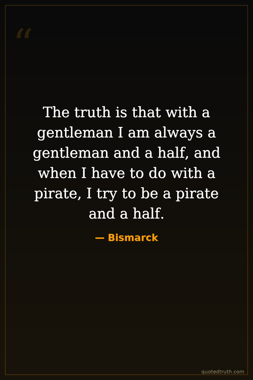 The truth is that with a gentleman I am always a gentleman and a half, and when I have to do with a pirate, I try to be a pirate and a half.