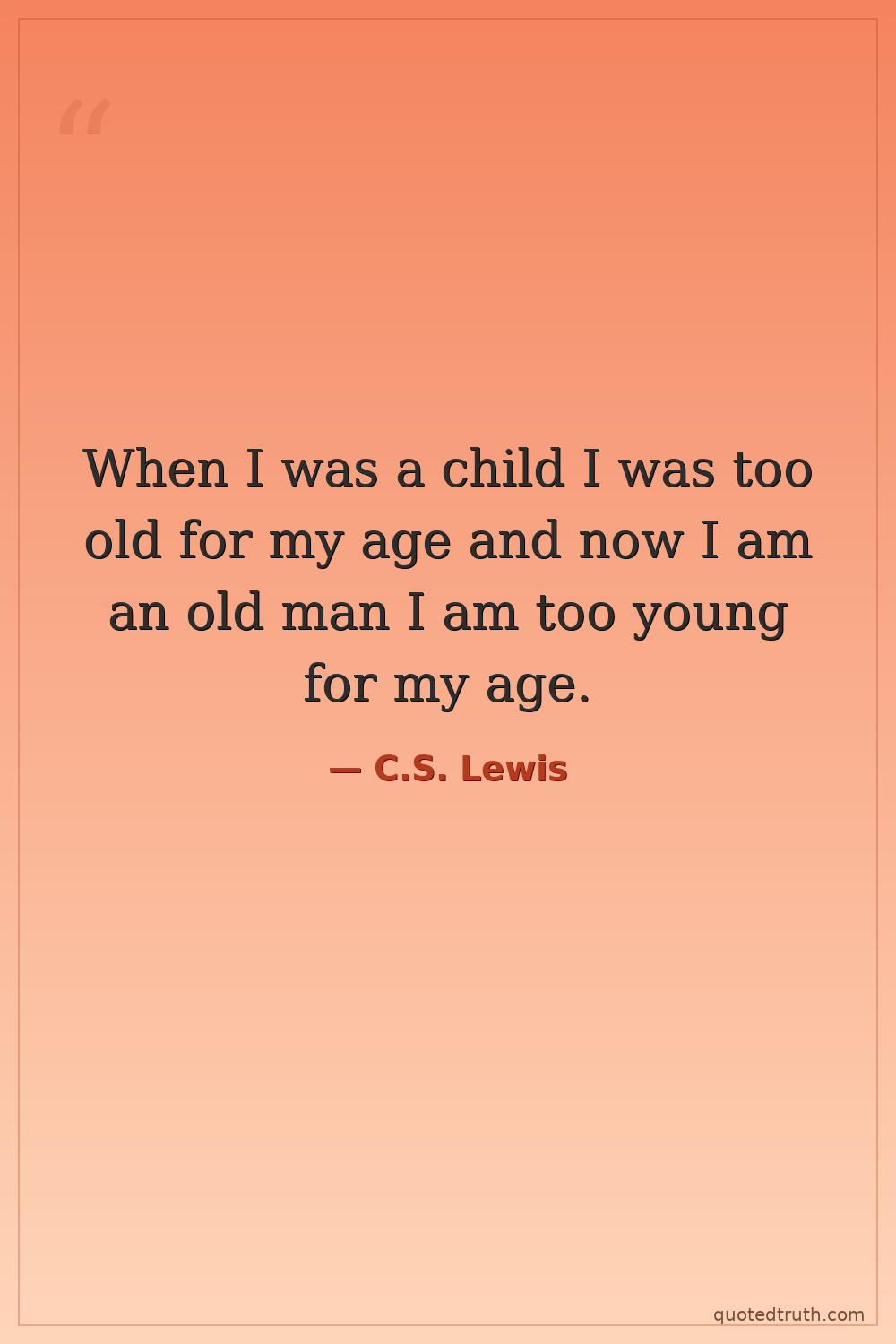 When I was a child I was too old for my age and now I am an old man I am too young for my age.