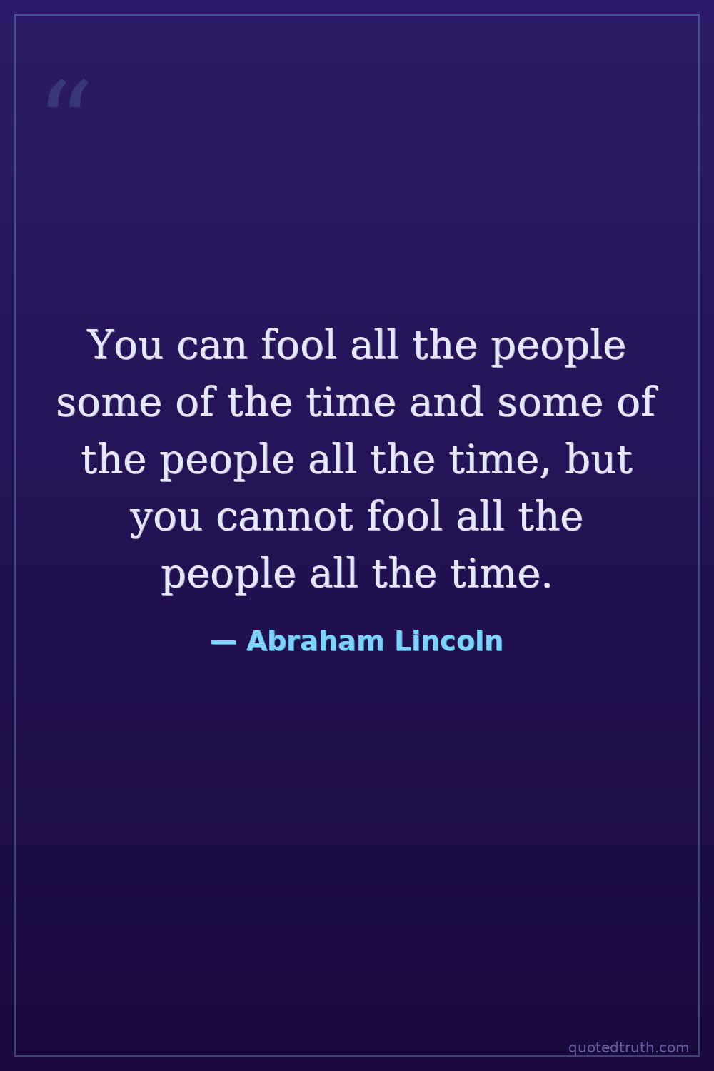 You can fool all the people some of the time and some of the people all the time, but you cannot fool all the people all the time.