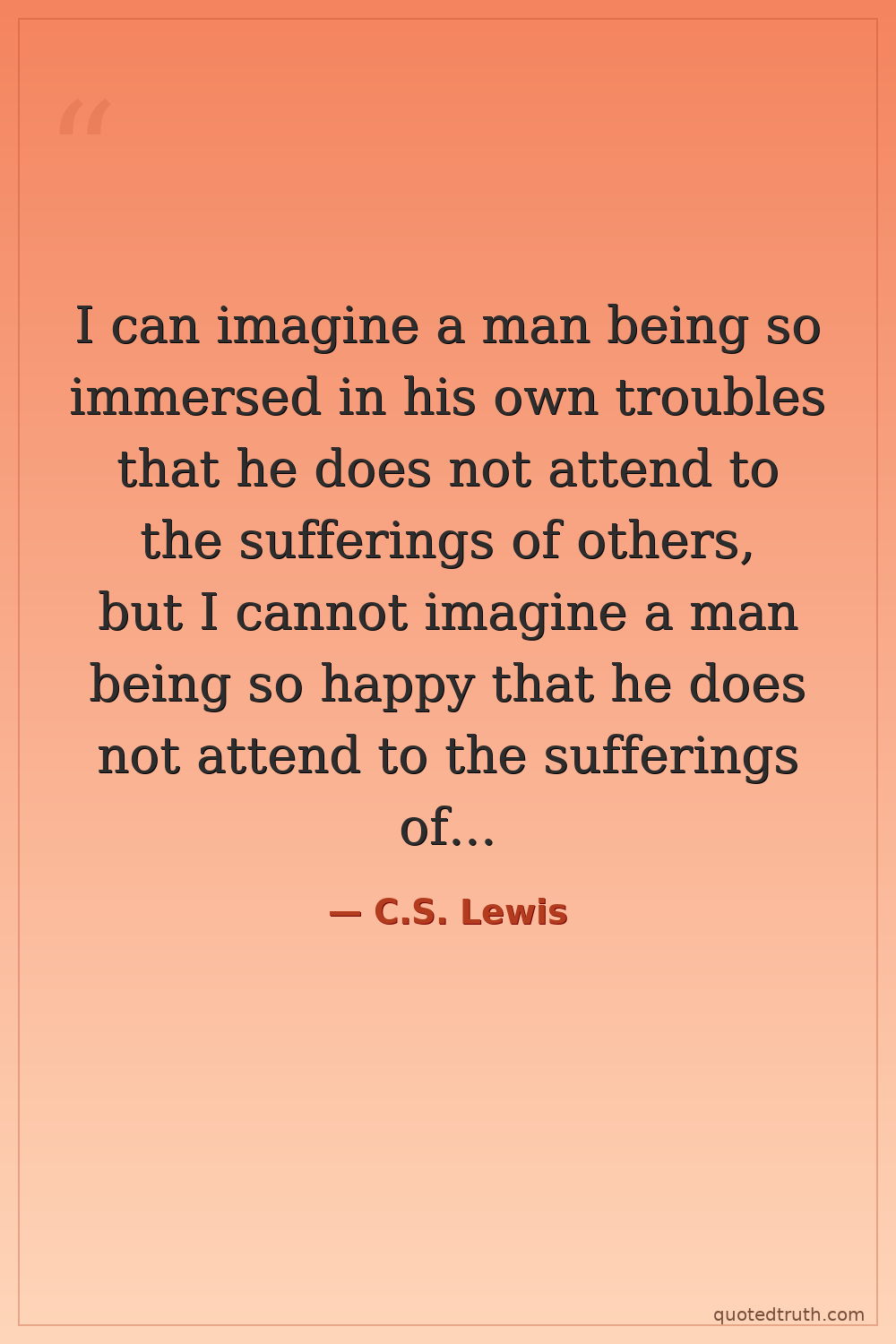 I can imagine a man being so immersed in his own troubles that he does not attend to the sufferings of others, but I cannot imagine a man being so happy that he does not attend to the sufferings of others.