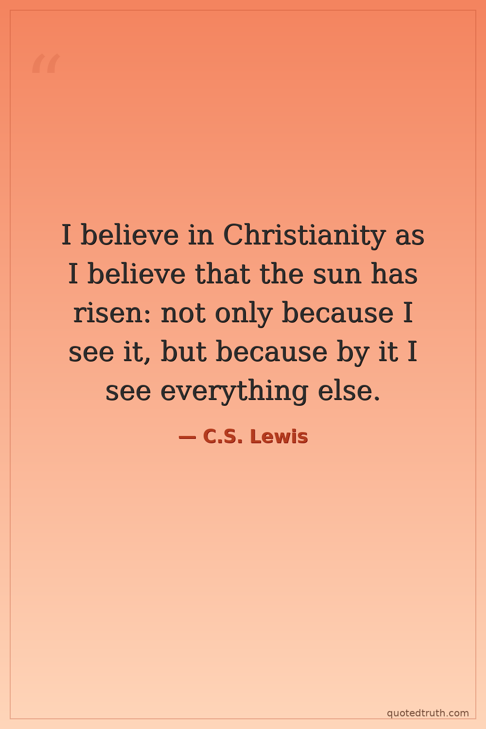 I believe in Christianity as I believe that the sun has risen: not only because I see it, but because by it I see everything else.