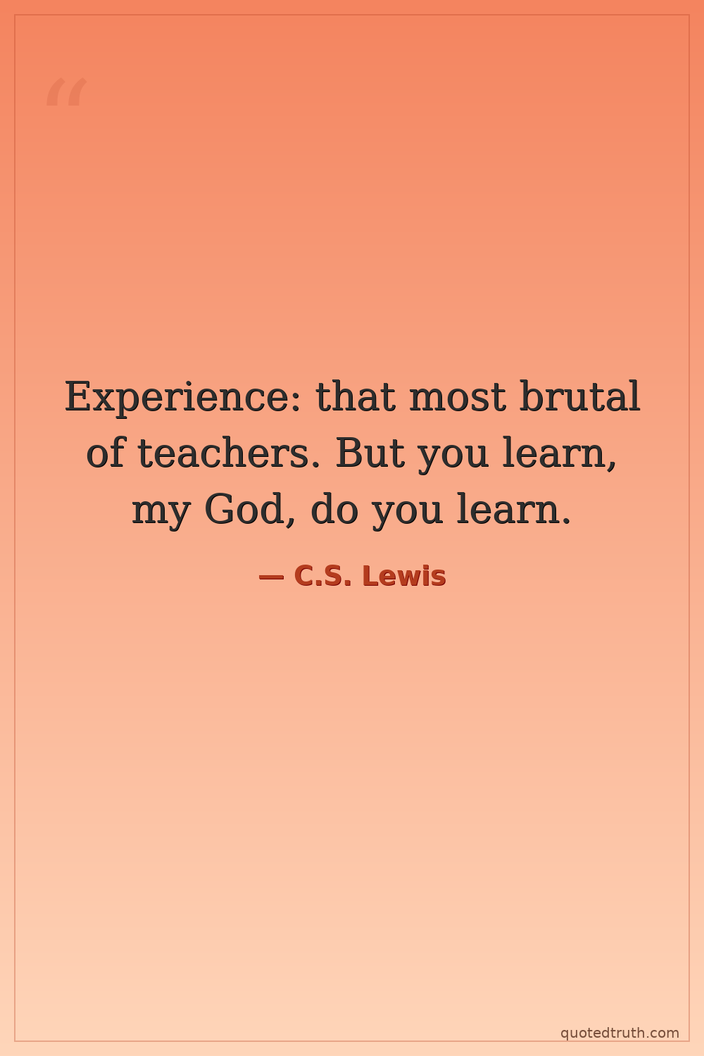 Experience: that most brutal of teachers. But you learn, my God, do you learn.