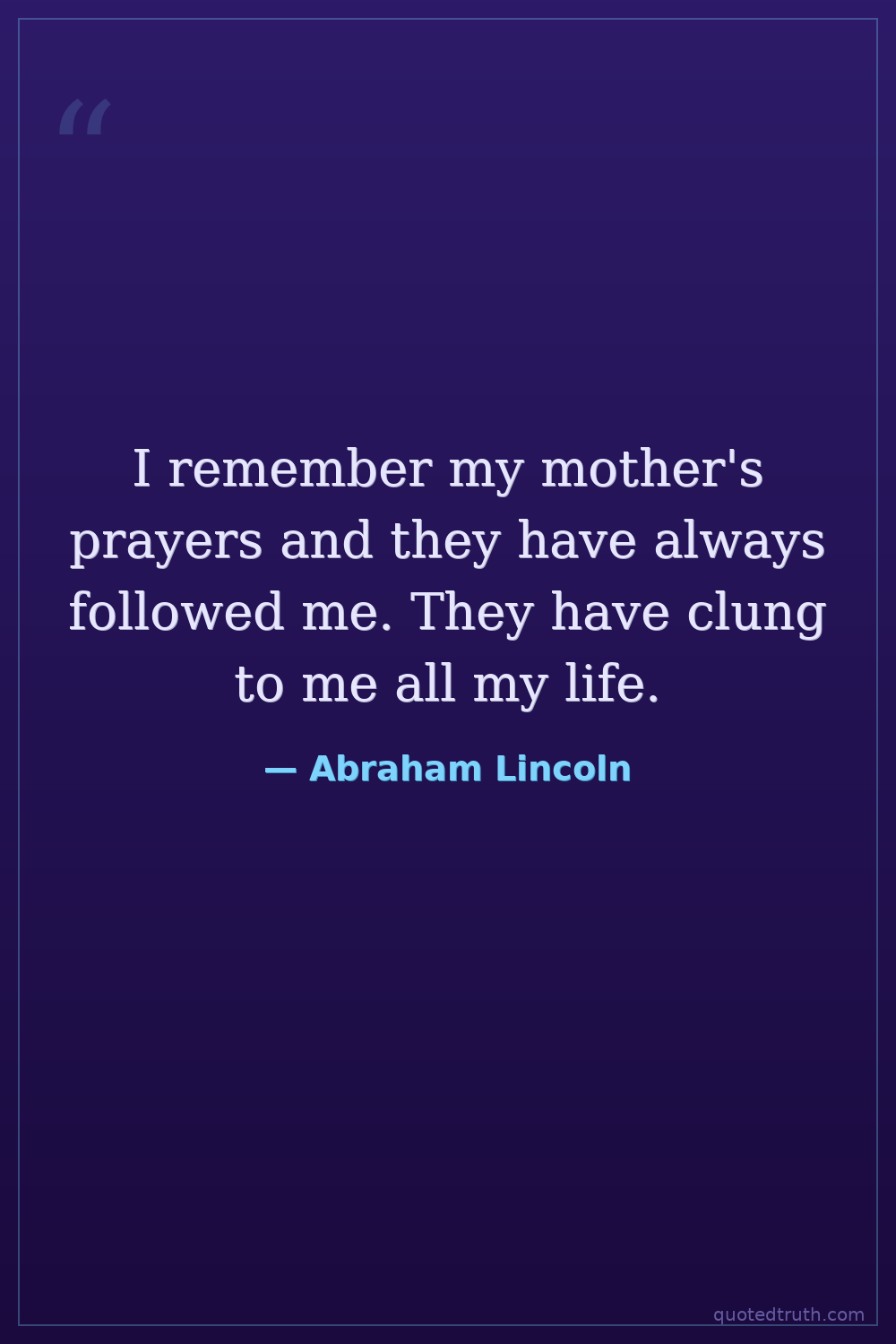 I remember my mother's prayers and they have always followed me. They have clung to me all my life.