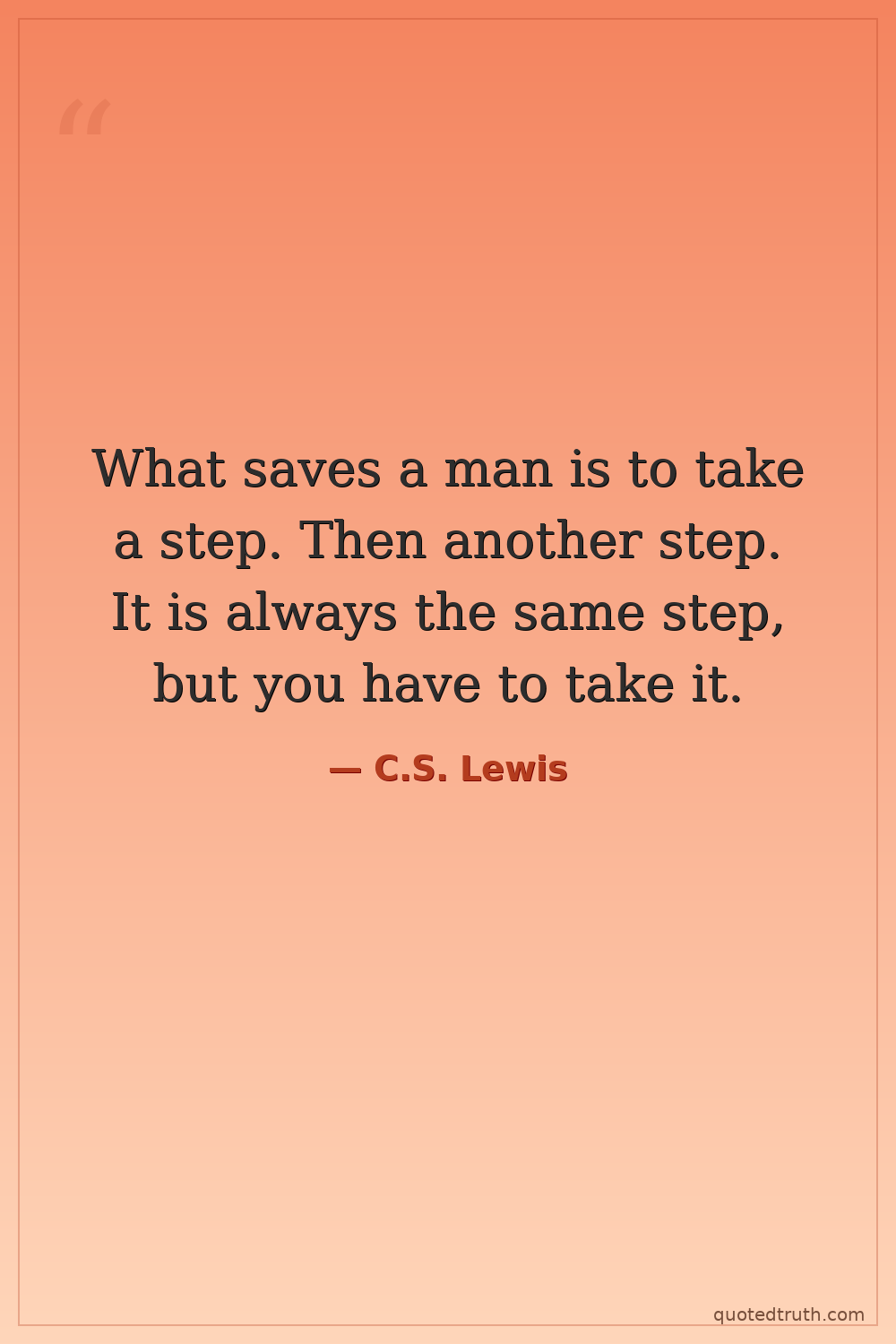 What saves a man is to take a step. Then another step. It is always the same step, but you have to take it.