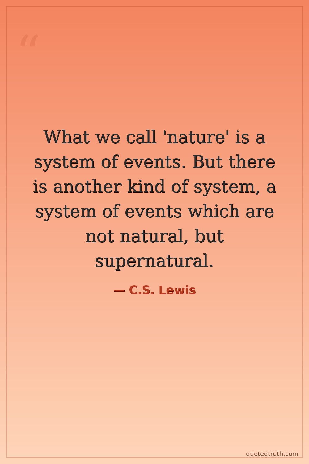 What we call 'nature' is a system of events. But there is another kind of system, a system of events which are not natural, but supernatural.