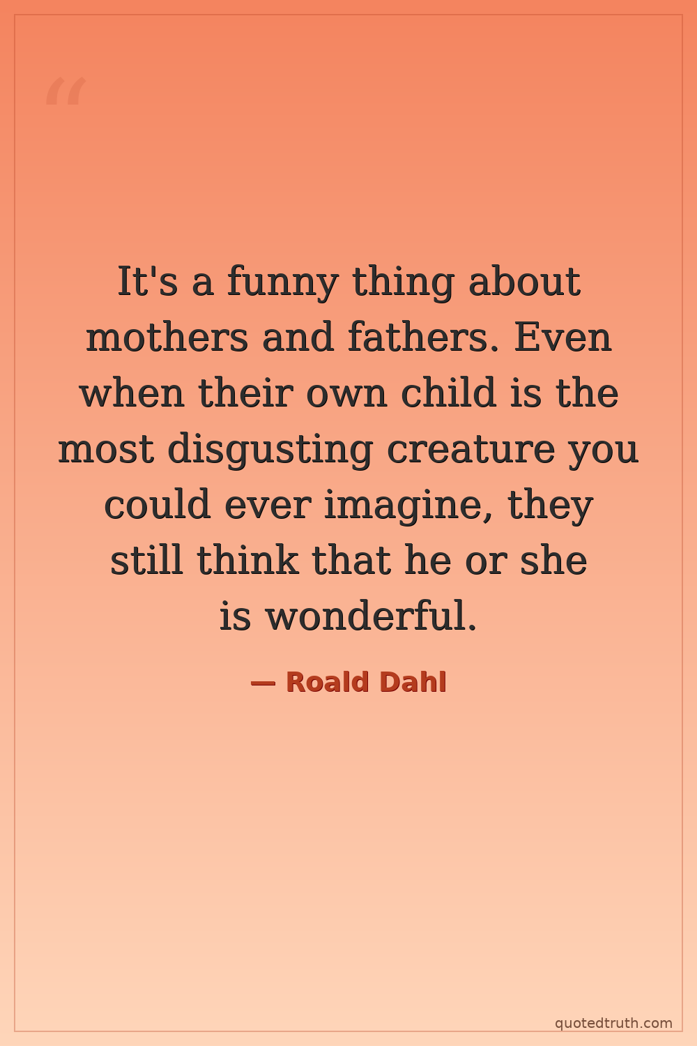 It's a funny thing about mothers and fathers. Even when their own child is the most disgusting creature you could ever imagine, they still think that he or she is wonderful.
