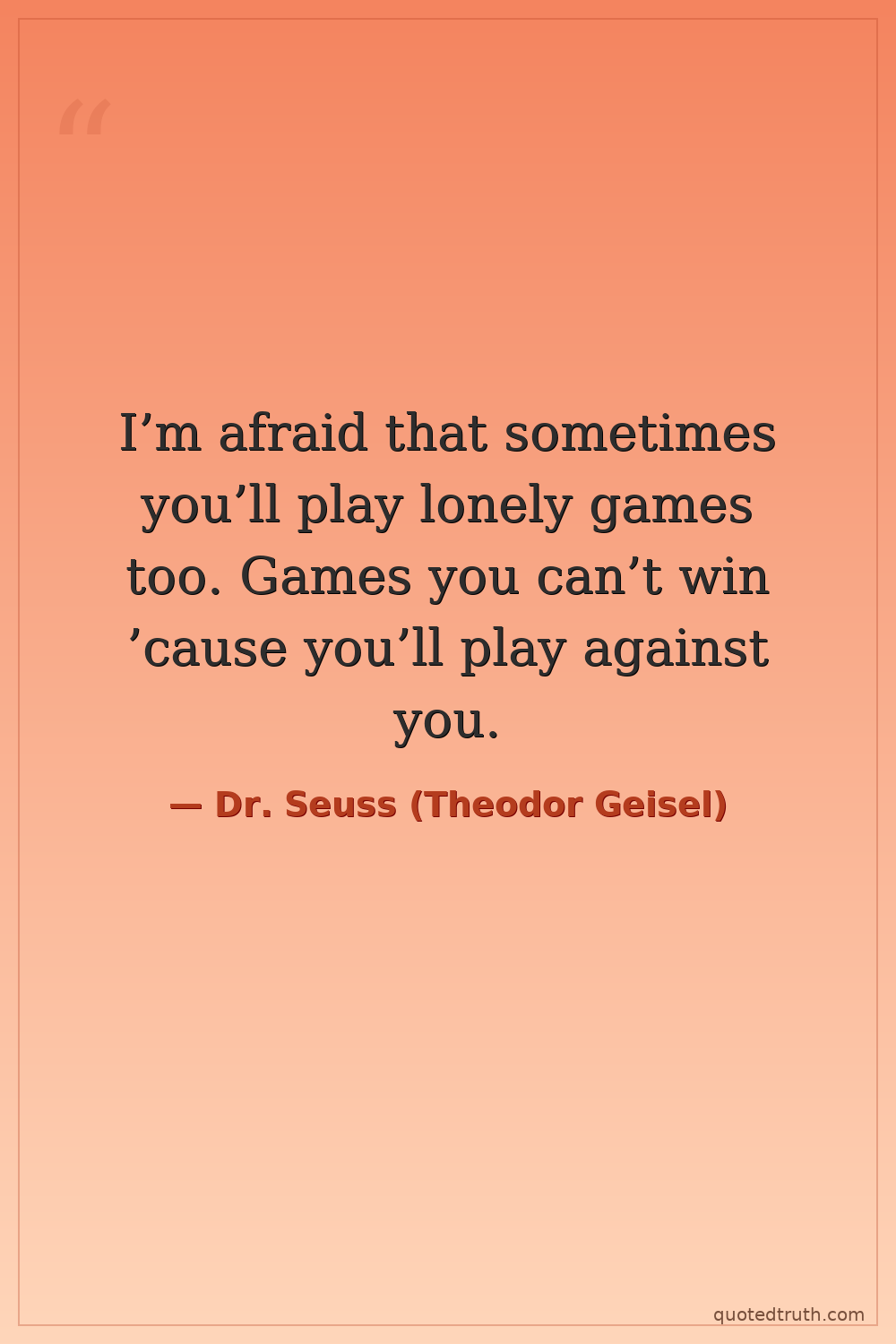I’m afraid that sometimes you’ll play lonely games too. Games you can’t win ’cause you’ll play against you.
