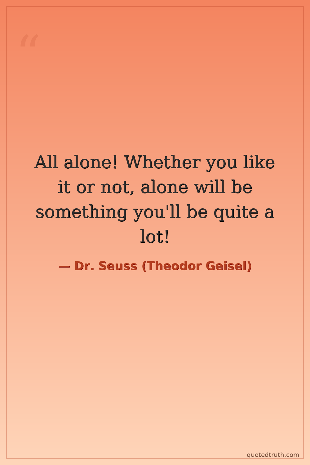 All alone! Whether you like it or not, alone will be something you'll be quite a lot!