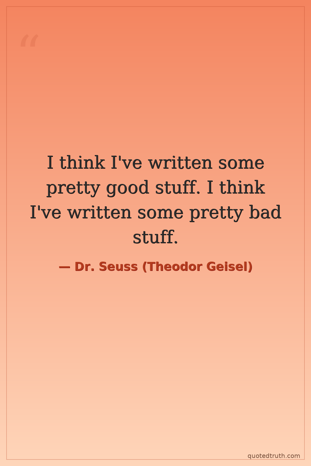 Humorous"In the book I wrote, the cat in the hat, he was very naughty, he was very bad, but he was very smart."