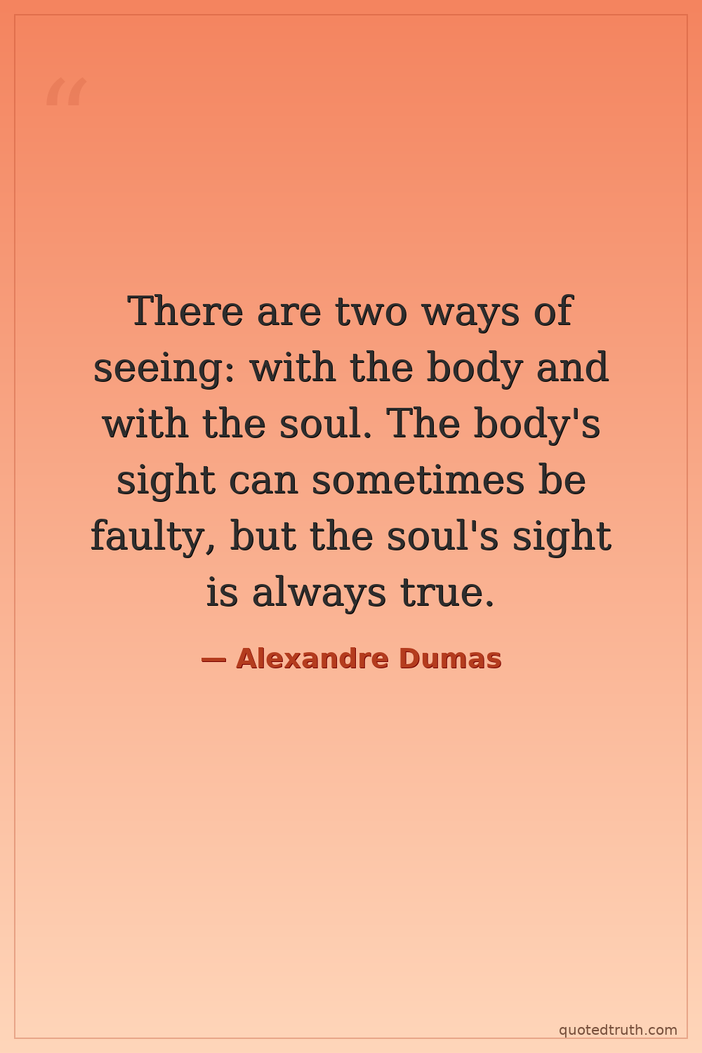 There are two ways of seeing: with the body and with the soul. The body's sight can sometimes be faulty, but the soul's sight is always true.