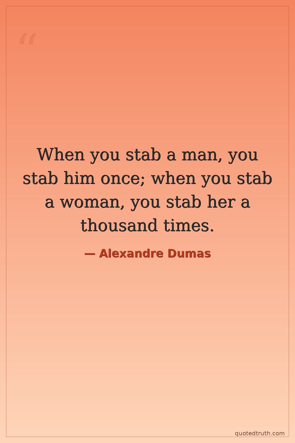 When you stab a man, you stab him once; when you stab a woman, you stab her a thousand times.