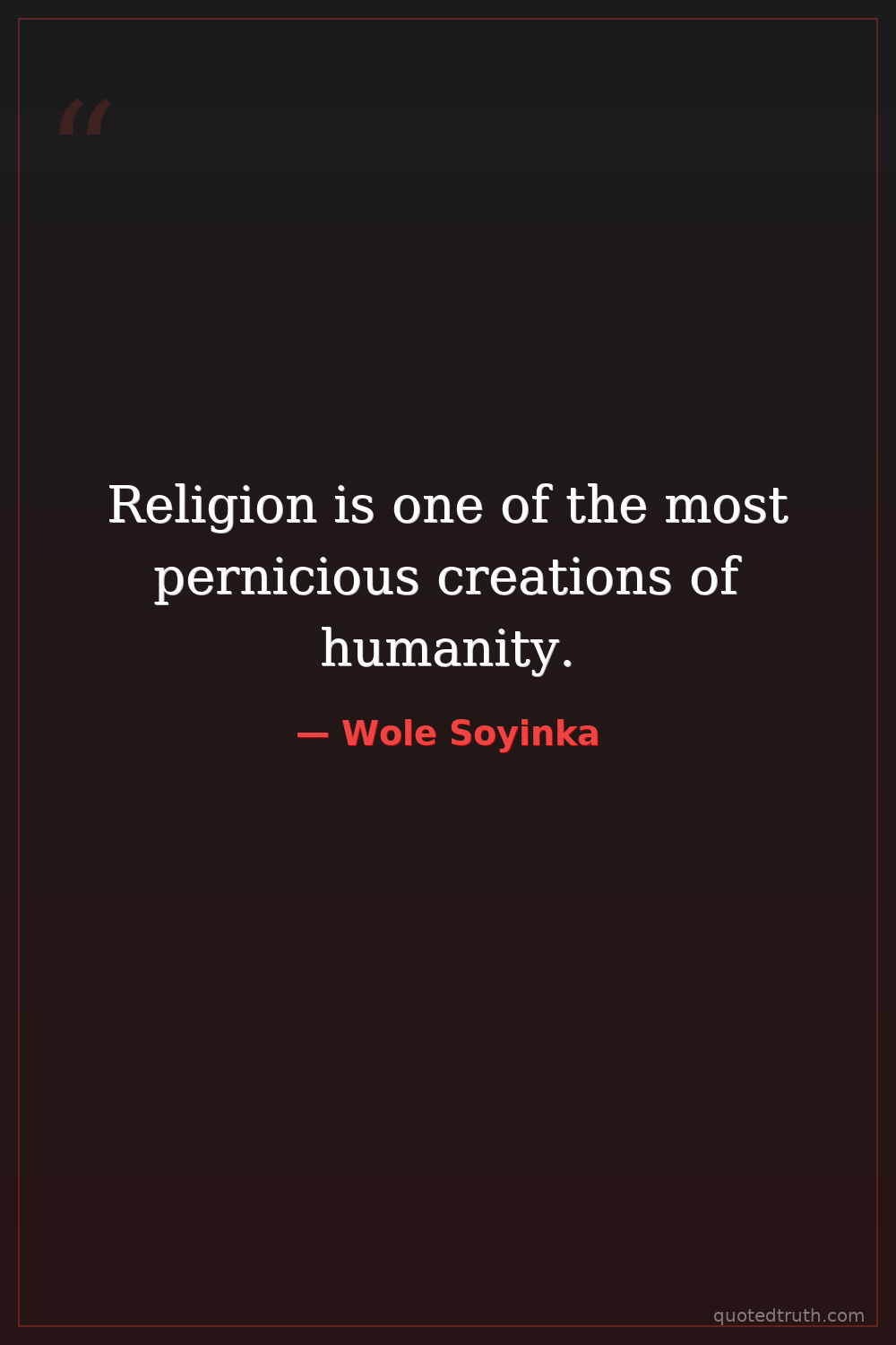 Religion is one of the most pernicious creations of humanity.