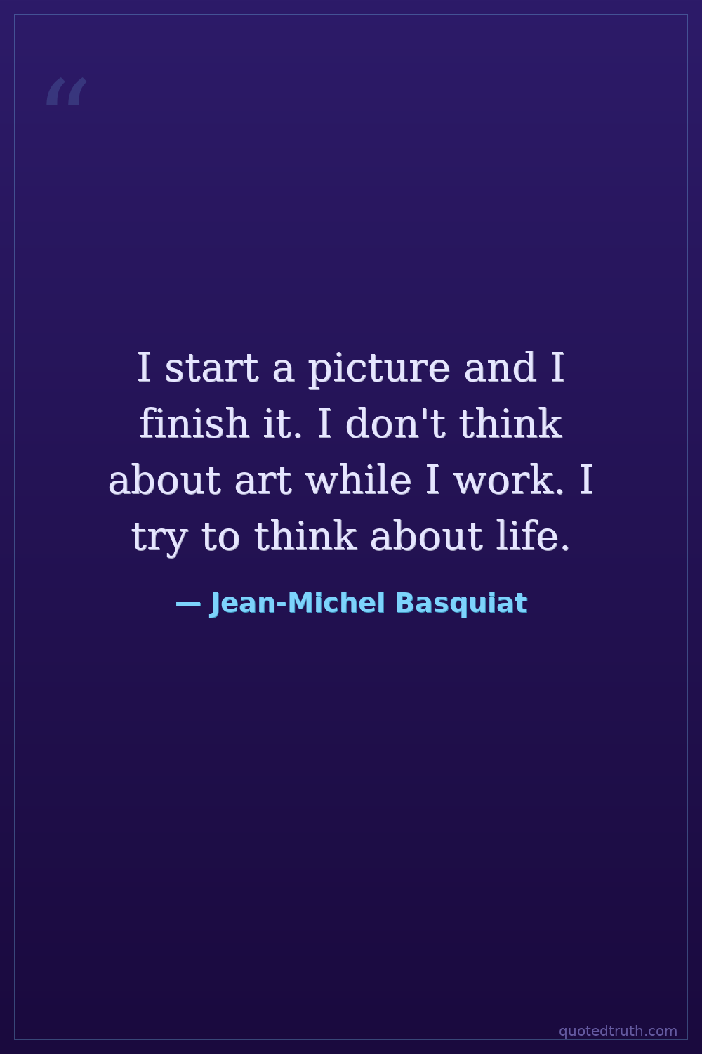 I start a picture and I finish it. I don't think about art while I work. I try to think about life.
