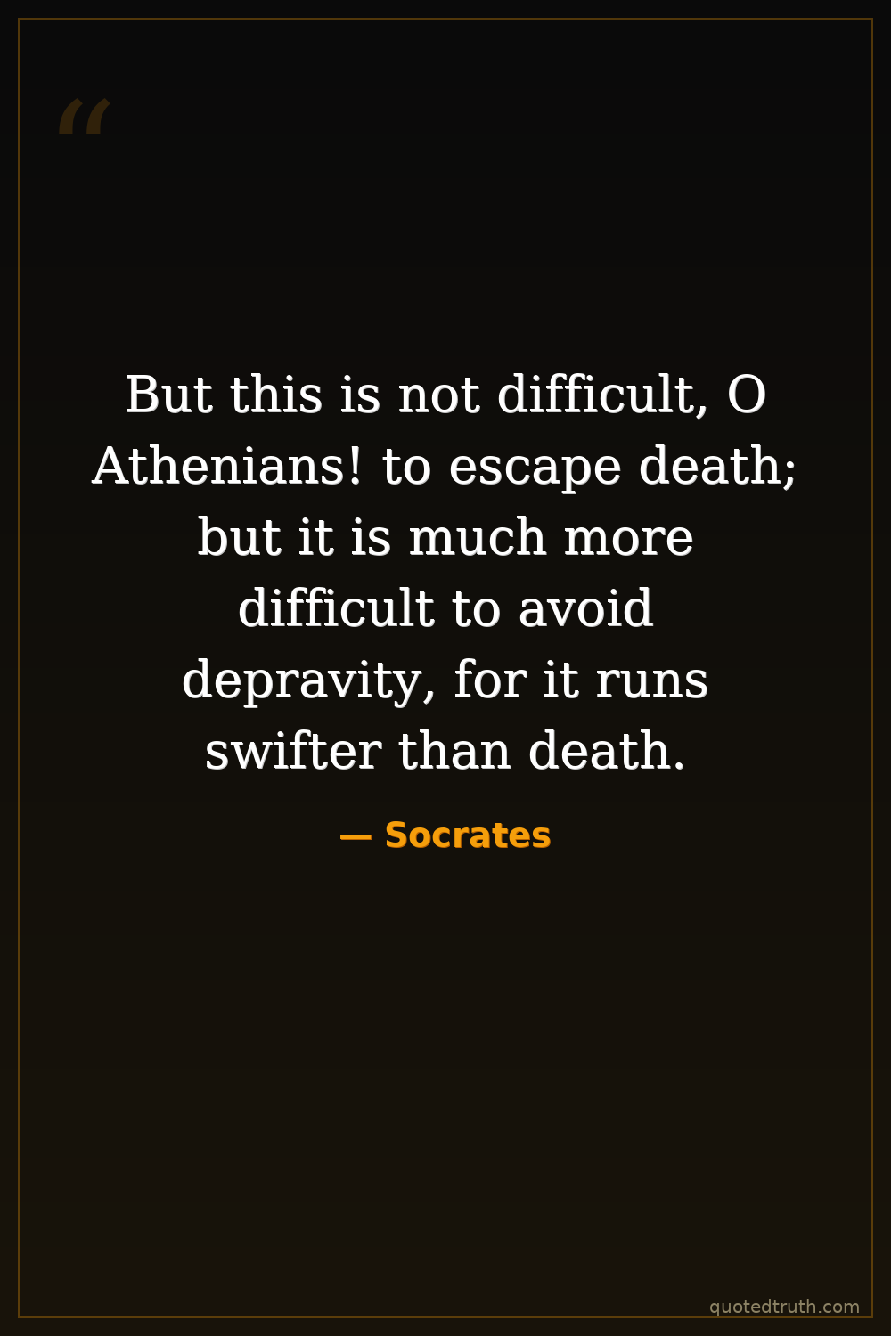 But this is not difficult, O Athenians! to escape death; but it is much more difficult to avoid depravity, for it runs swifter than death.