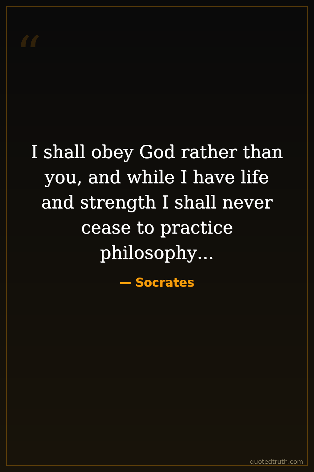 I shall obey God rather than you, and while I have life and strength I shall never cease to practice philosophy...