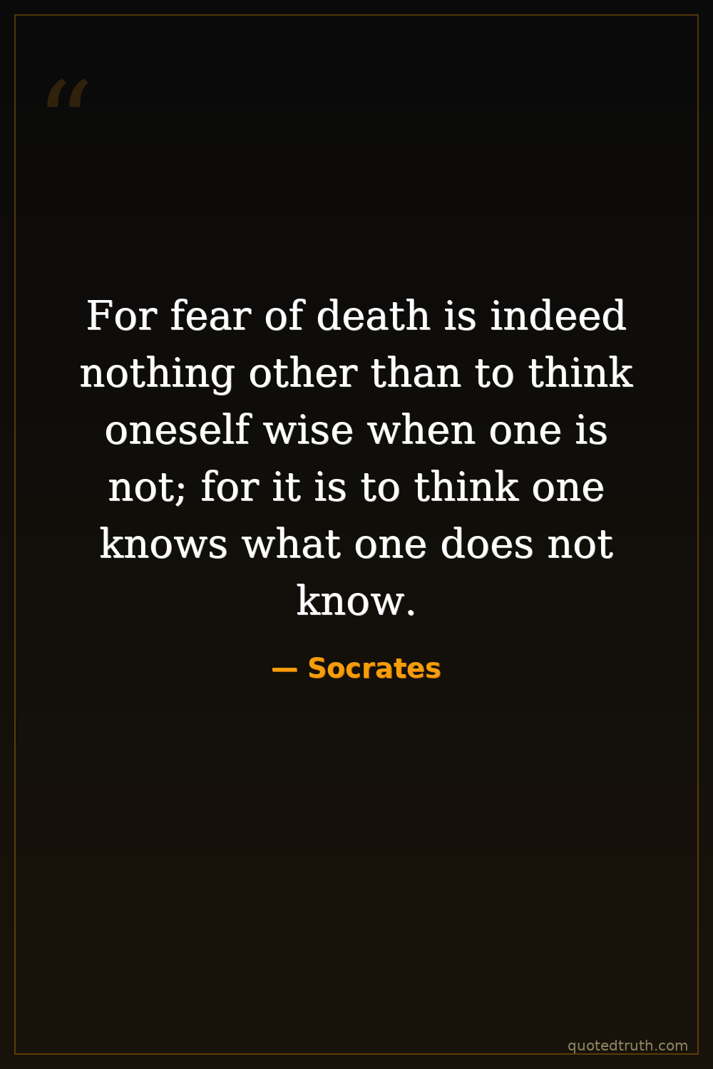 For fear of death is indeed nothing other than to think oneself wise when one is not; for it is to think one knows what one does not know.