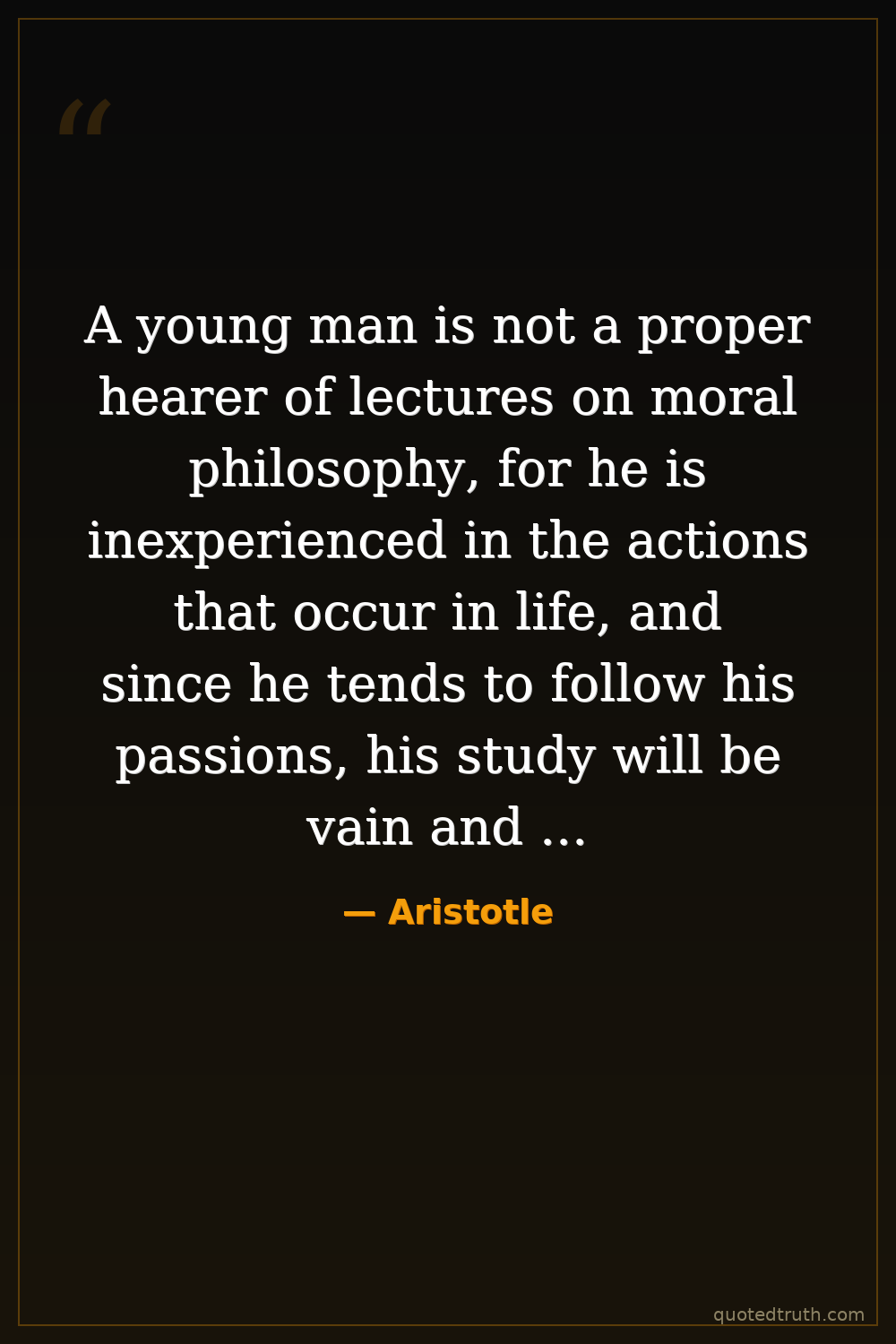 A young man is not a proper hearer of lectures on moral philosophy, for he is inexperienced in the actions that occur in life, and since he tends to follow his passions, his study will be vain and unprofitable.