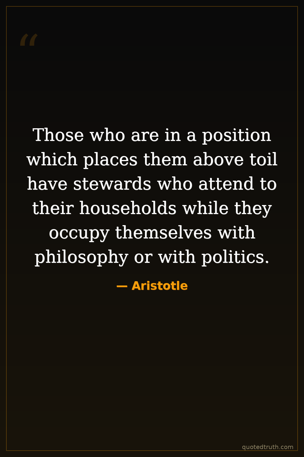 Those who are in a position which places them above toil have stewards who attend to their households while they occupy themselves with philosophy or with politics.