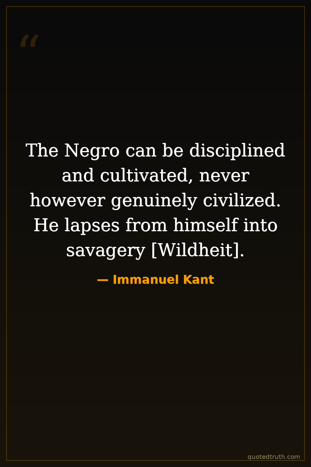 The Negro can be disciplined and cultivated, never however genuinely civilized. He lapses from himself into savagery [Wildheit].