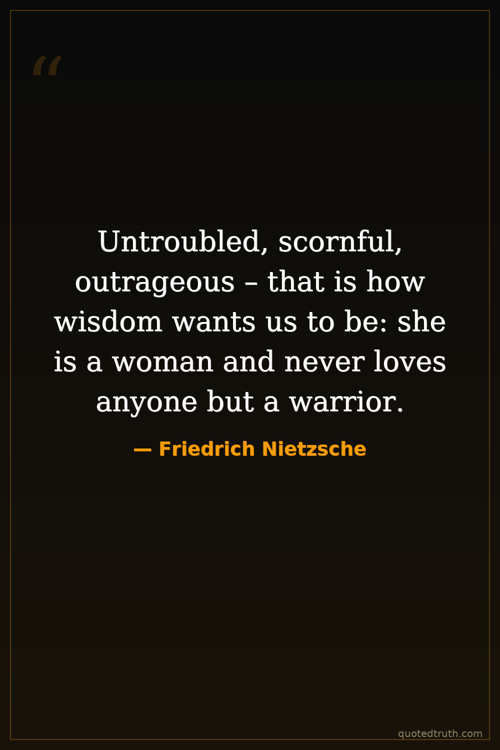 Untroubled, scornful, outrageous – that is how wisdom wants us to be: she is a woman and never loves anyone but a warrior.