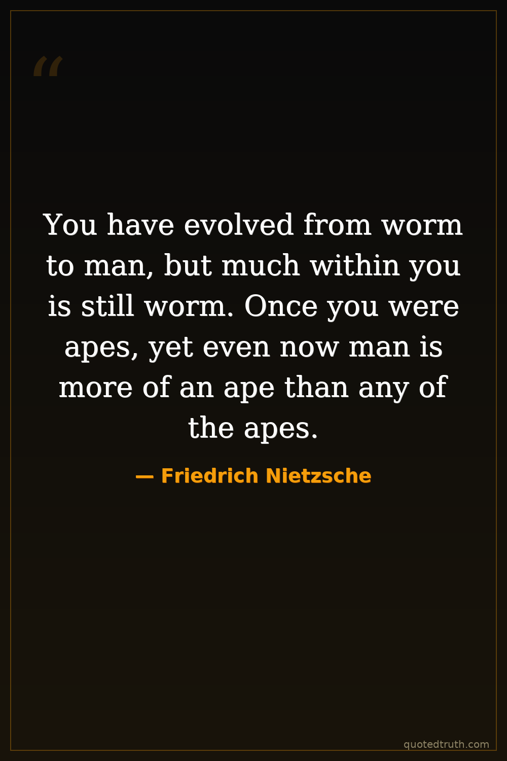 You have evolved from worm to man, but much within you is still worm. Once you were apes, yet even now man is more of an ape than any of the apes.
