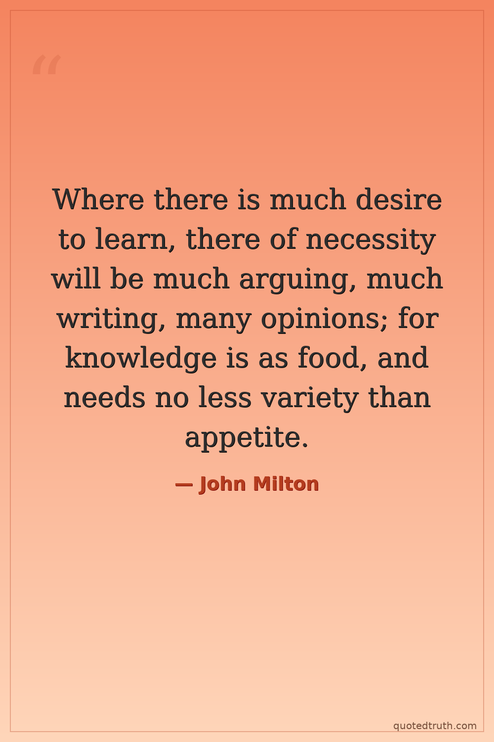 Where there is much desire to learn, there of necessity will be much arguing, much writing, many opinions; for knowledge is as food, and needs no less variety than appetite.