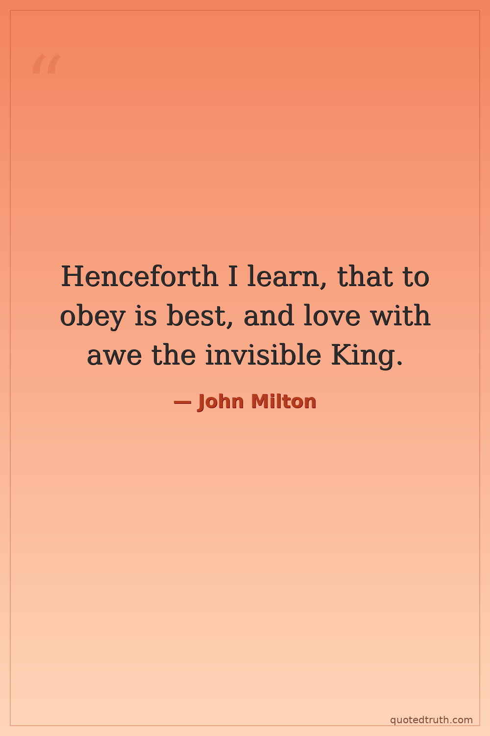 Henceforth I learn, that to obey is best, and love with awe the invisible King.
