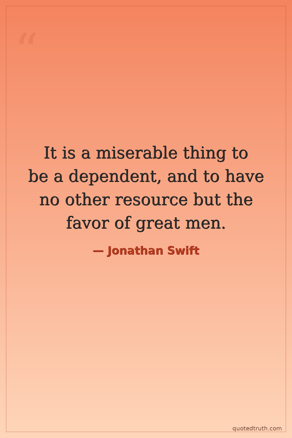 It is a miserable thing to be a dependent, and to have no other resource but the favor of great men.