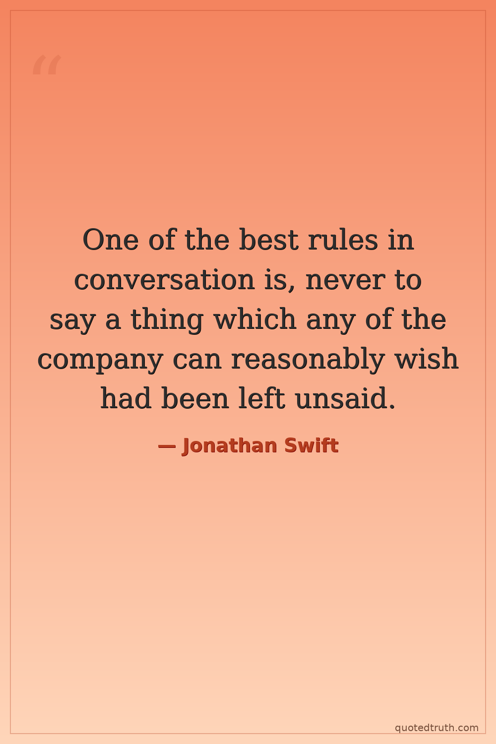 One of the best rules in conversation is, never to say a thing which any of the company can reasonably wish had been left unsaid.