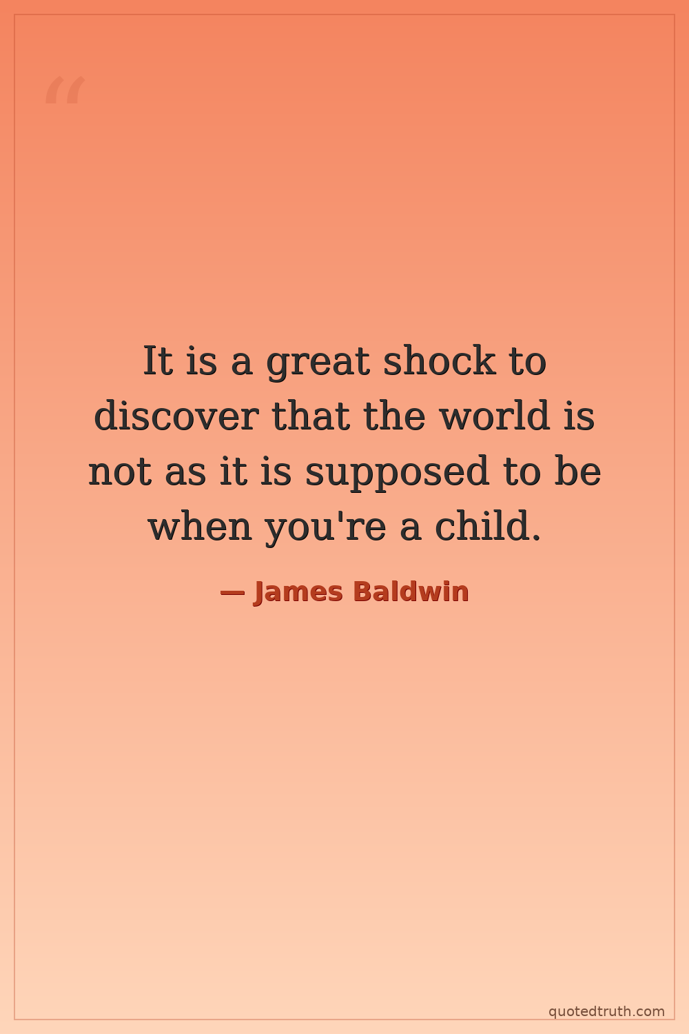 It is a great shock to discover that the world is not as it is supposed to be when you're a child.