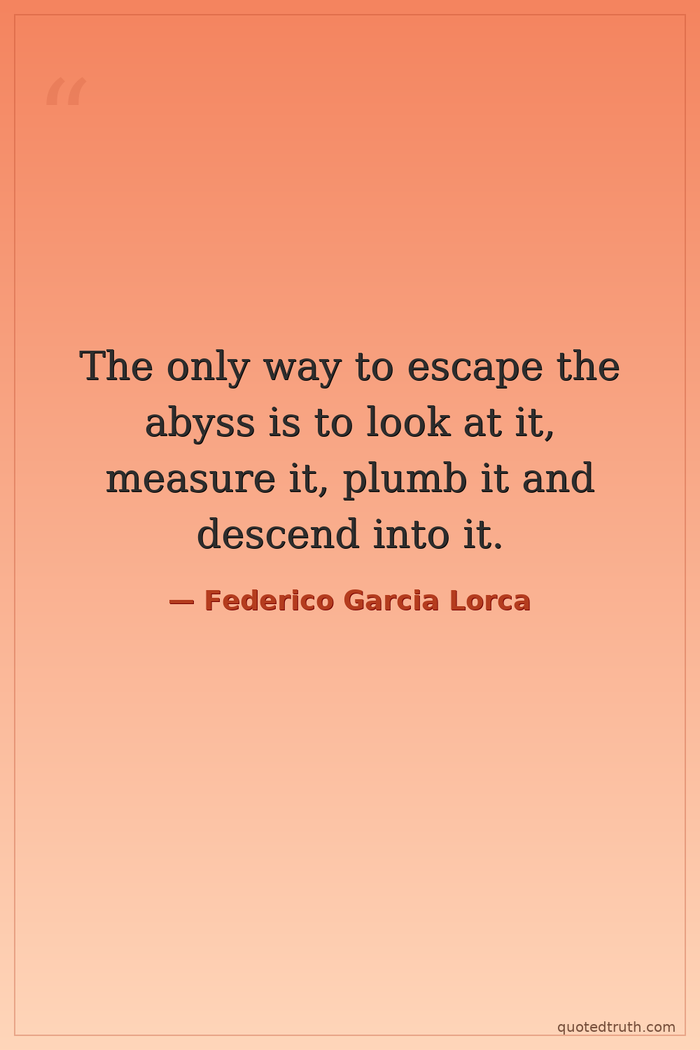 The only way to escape the abyss is to look at it, measure it, plumb it and descend into it.