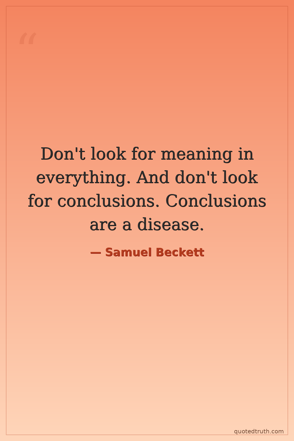 Don't look for meaning in everything. And don't look for conclusions. Conclusions are a disease.
