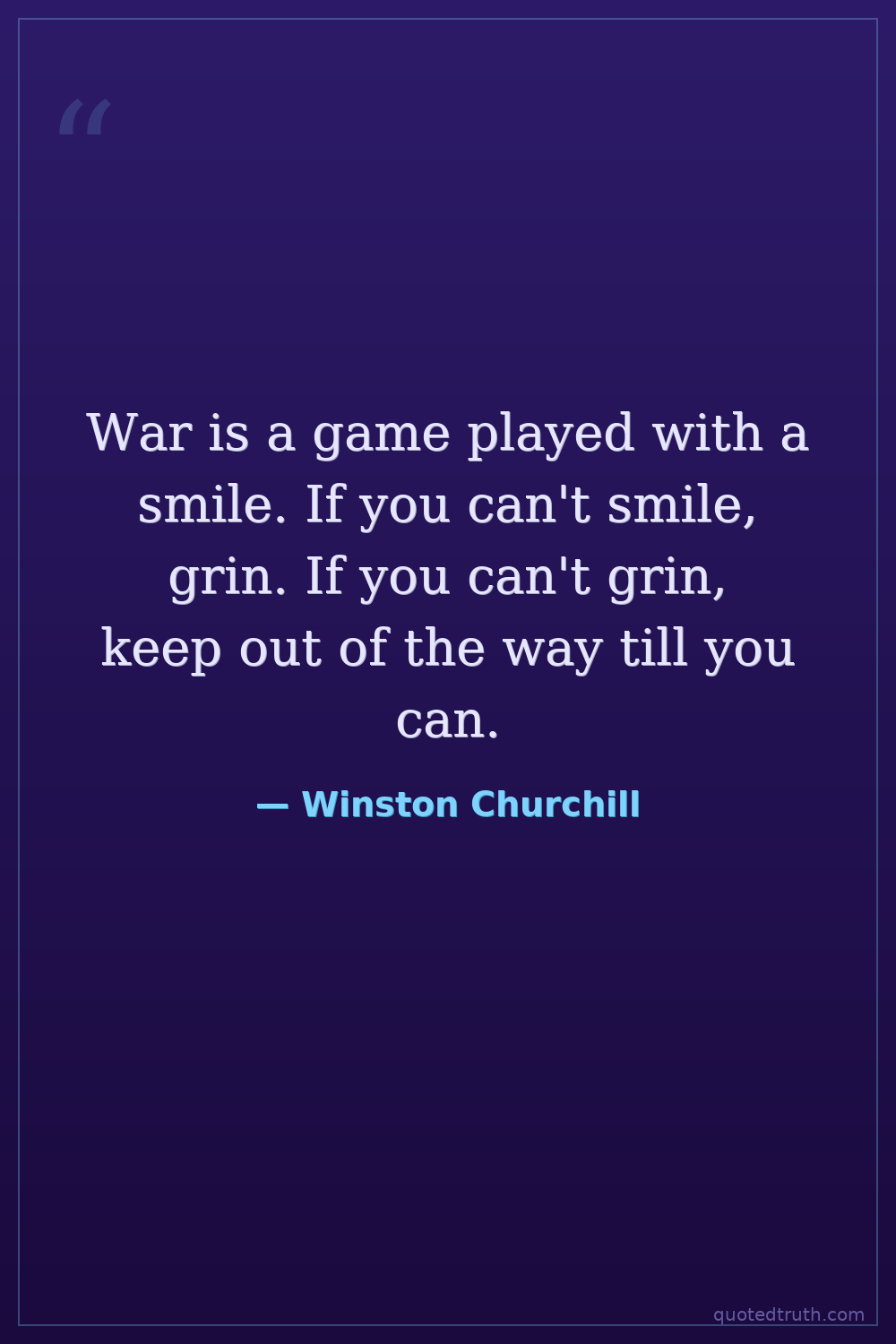 War is a game played with a smile. If you can't smile, grin. If you can't grin, keep out of the way till you can.