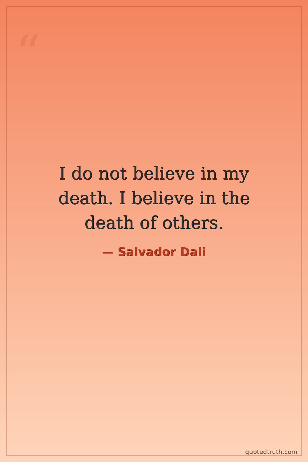 I do not believe in my death. I believe in the death of others.