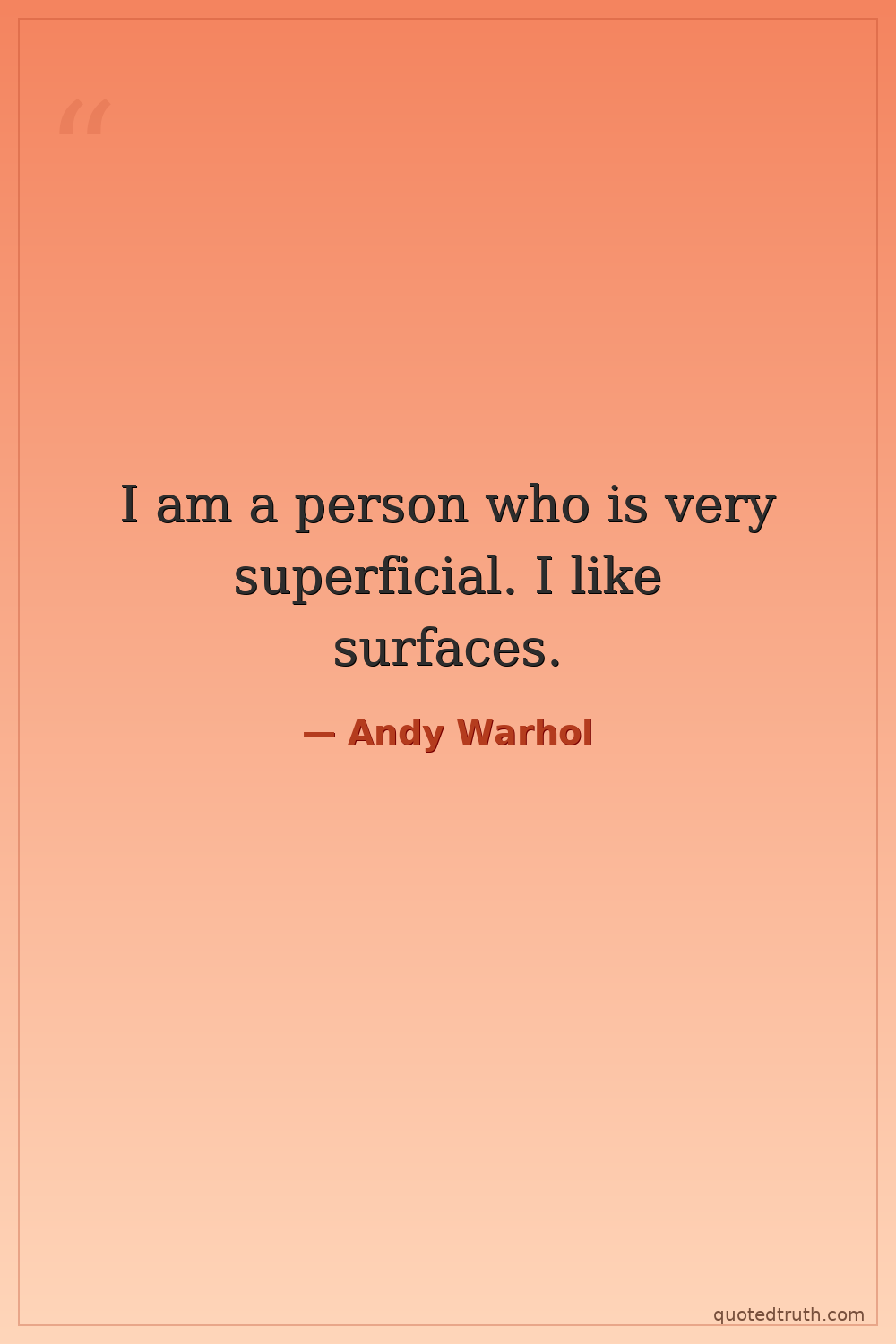 I am a person who is very superficial. I like surfaces.