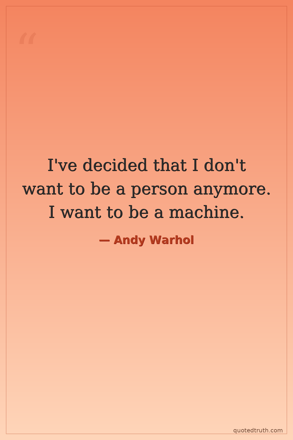 I've decided that I don't want to be a person anymore. I want to be a machine.