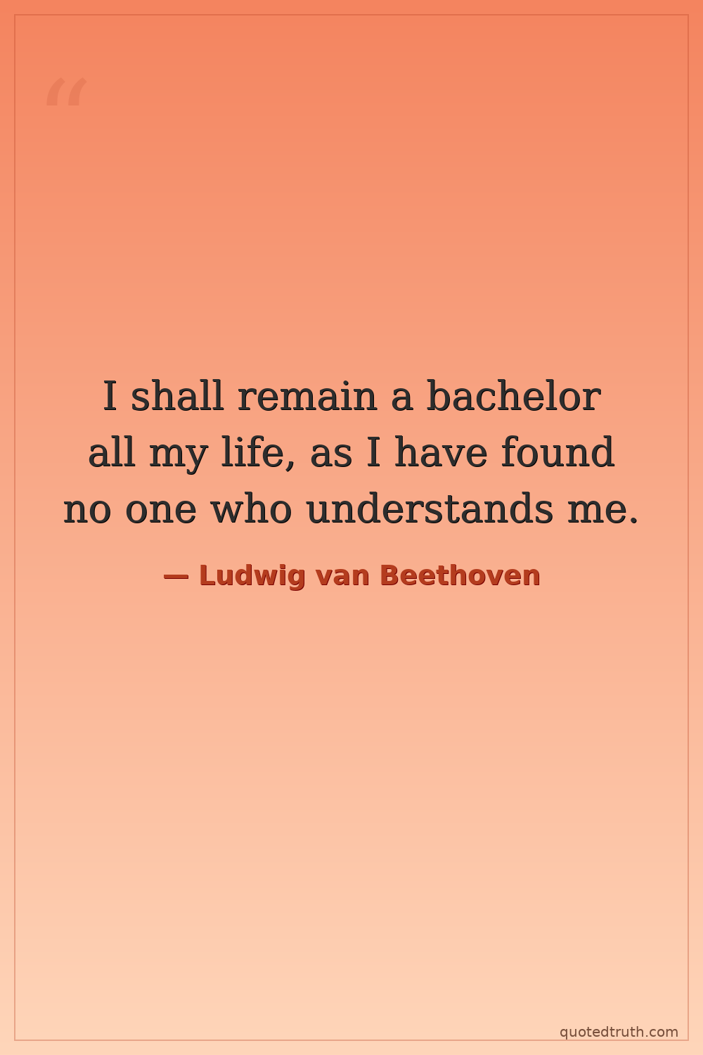 I shall remain a bachelor all my life, as I have found no one who understands me.